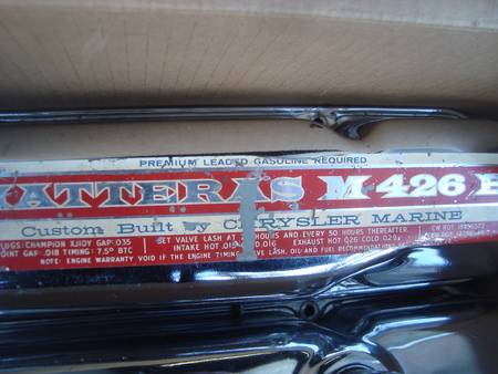I have a set of valve covers from a Hatteras built 426 W.i know a guy that actually worked at the Hatteras Yacht facility here in High Point NC back in the late 60's and 70's . he said they use to use the hemi engines in the Yachts there and told me about the pallets of Hemi's they kept in the engine room at that time