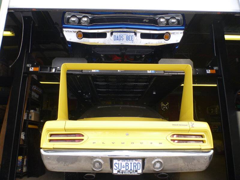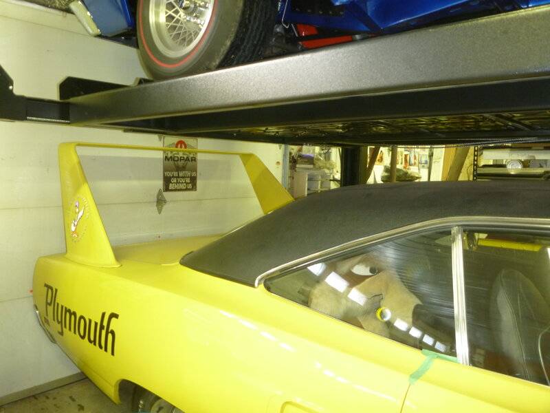 There's no fun in that!!!.. I haven't put a car into the ceiling yet on the 2 post lift. BTW, off to the shop to cut a hole in the ceiling... lolYou should fabricate an "up" limit switch to stop the motor so you don't accidentally drive that wing into the ceiling.