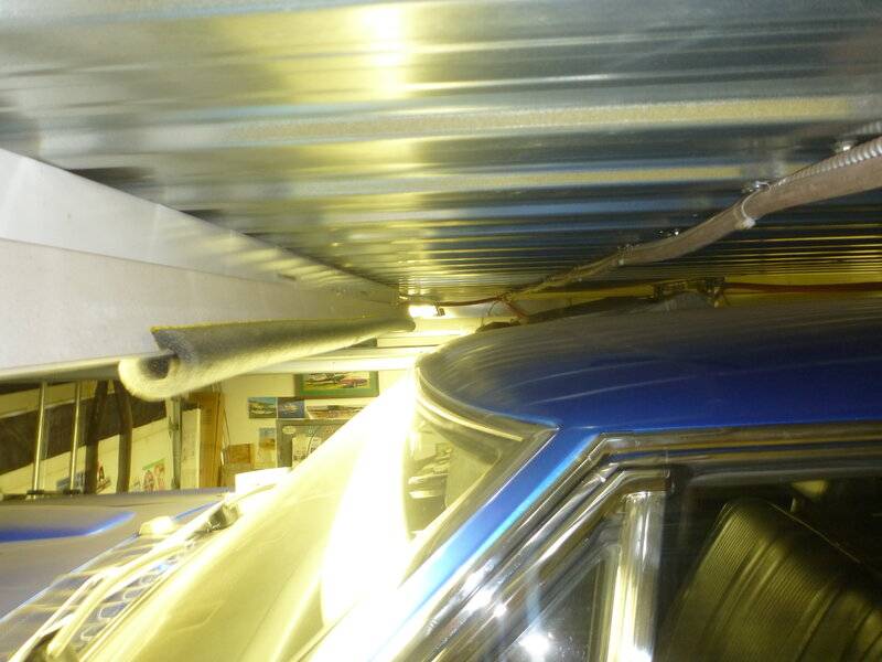 Why the Bee is backed in... to clear my light AND so the garage door can come almost fully up without hitting the windshield.