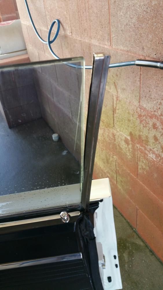 There is a rubber channel that fits into the stainless trim and that is what hold that piece to the glass.