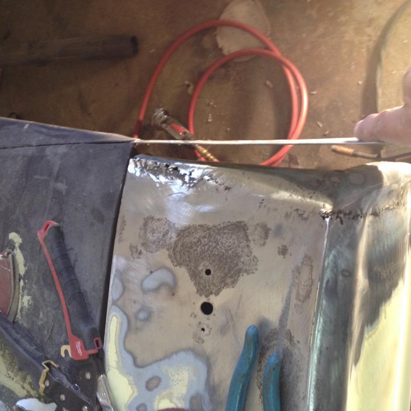So today was a good day, 45 degrees sunny, spent the day in the garage. I finished up the passenger side fender modification, sweeping the front edge back from an angle to 90 degrees with the fender. Flat. Worked out great, I only had to cut three hunks of steel to patch it together and they were small bits. A bit of filler and it's a go.